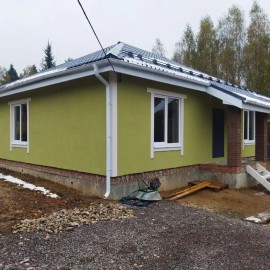 "Дом 95 кв.м. на участке 6, 25 сотки в строящемся коттеджном поселке в 43 км от МКАД по Пятницкому шоссе с отделкой под ключ. Планировка: 3 спальни, 2 санузла, кухня-гостиная, коридор, Дома из газобетона (Bonolit), качественно утеплены каменной ватой (Технониколь) и облицованы кирпичом...