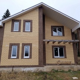 "Дом 156 кв.м. на участке 17, 5 соток ИЖС в д. Редино. 45 км от МКАД. ДОМ: построен из бруса утеплен и обложен кирпичом. Есть подвал с теплым полом и камином. 4 спальни. Сауна на цокольном этаже. КОММУНИКАЦИИ: Электричество 15 кВт, магистральный газ. Колодец и септик - все введено в...